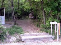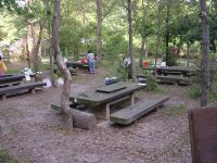 木立の中に10人が座れるベンチ付きのテーブルが8脚あります。 そのうち6脚のテーブルには真ん中にバーベキュー用の炉が備えてあります。 |